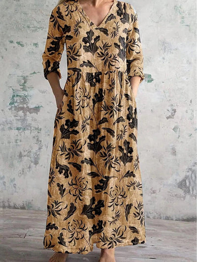 Celeste – Abito lungo incrociato in cotone e lino con cintura e polsini plissettati