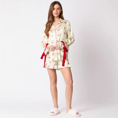 Eudora – Set Pigiama in Seta con Polsini a Fiocco e Stampa 2