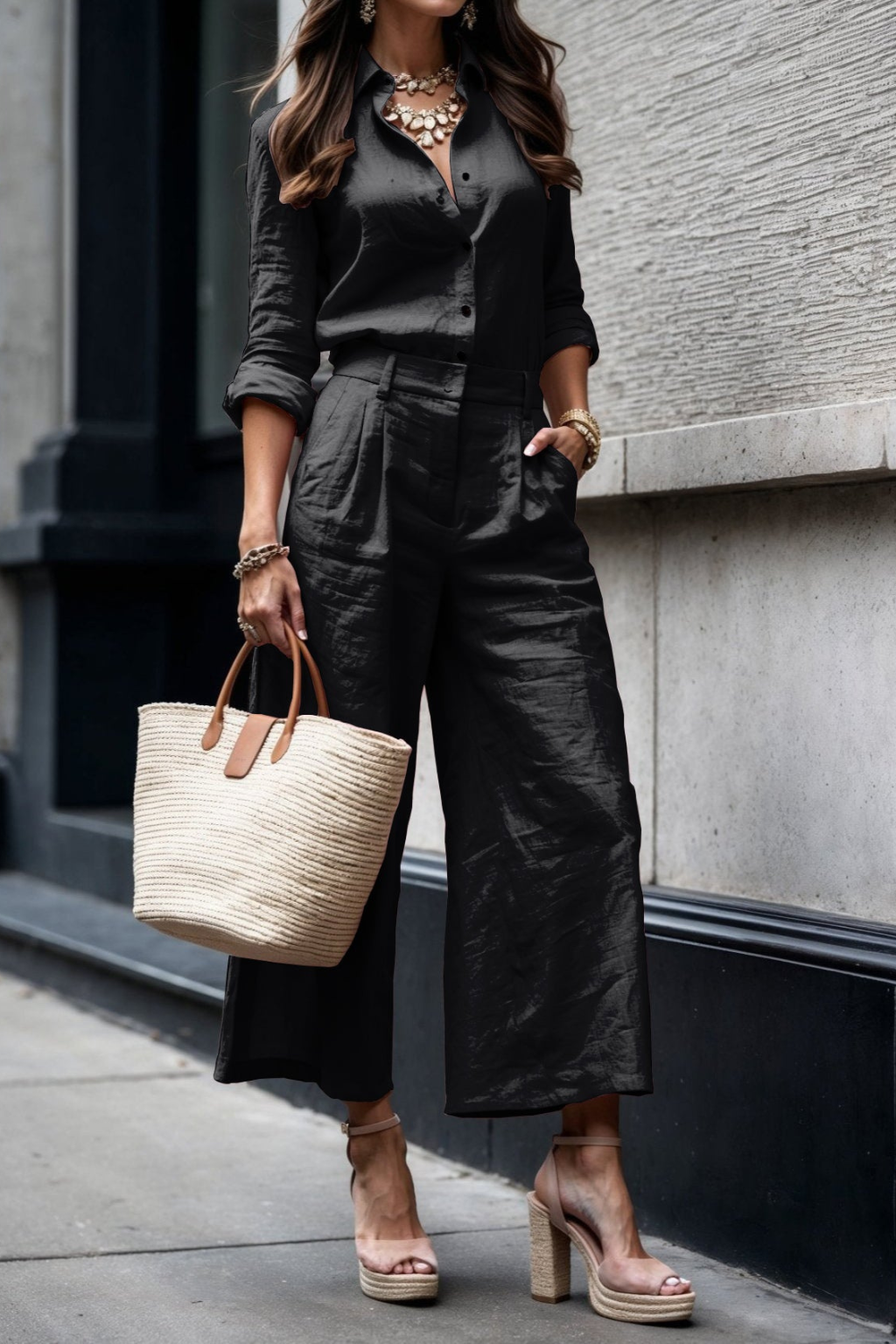 Il set Mariona unisce una silhouette rilassata e raffinata che trasmette sicurezza e tranquillità. La camicia fluida con bottoni e i pantaloni ampi a gamba corta creano un abbinamento armonioso, ideale sia per le giornate dinamiche che per le serate tranquille. Con il suo fascino discreto e il comfort che dura tutto il giorno, è la scelta perfetta per un’eleganza quotidiana senza sforzo.